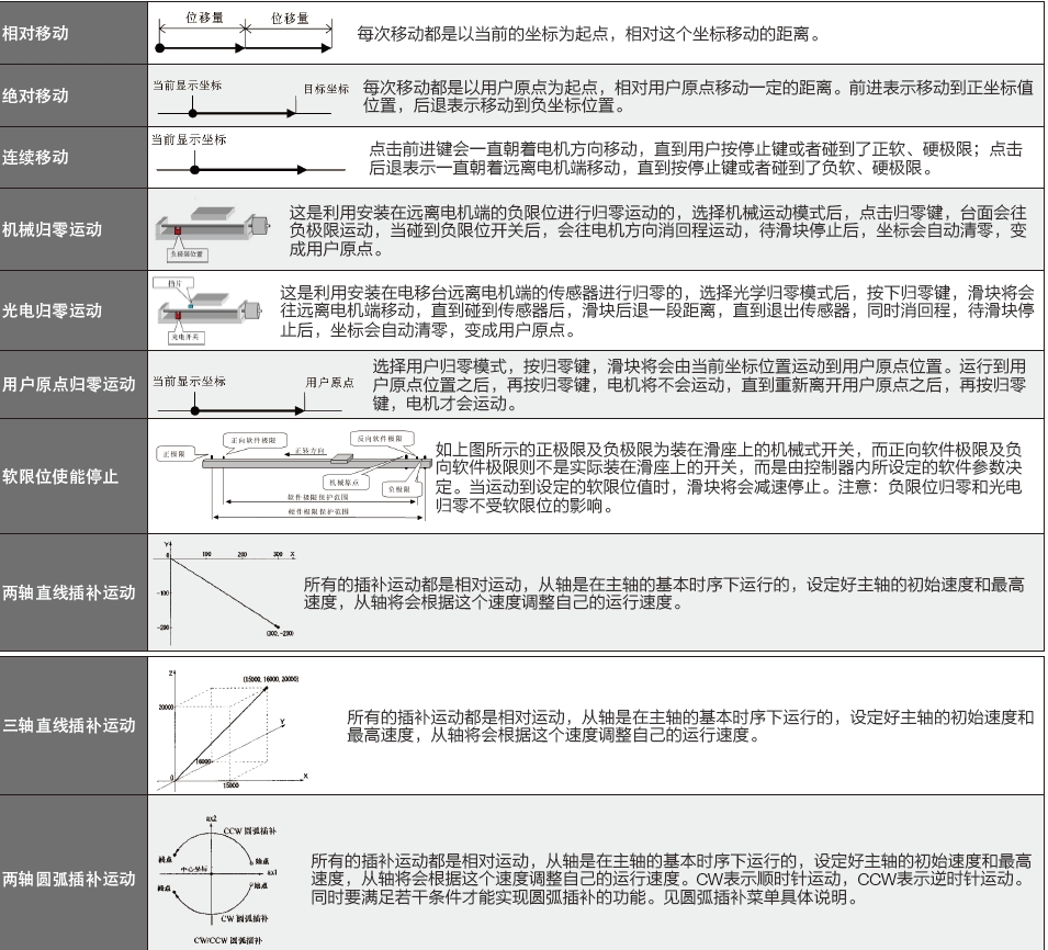 任意2-3軸直線插補,任意兩軸圓弧插補 |